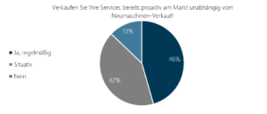 Erkenntnis 1: Weniger als die Hälfte der befragten Teilnehmenden agieren aktuell proaktiv im Serviceverkauf abseits des Neumaschinenverkaufs. Etwas mehr als 40% tun dies situativ und immerhin 13% verkaufen gar nicht aus dem Service heraus.