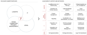 Während Logistikdienstleister in der Regel über eigene Projekt(leitungs)ressourcen verfügen und häufig erfahrene Projektteams mit der Aufgabe betrauen können, sind Auftraggeber in den seltensten Fällen tatsächlich auf eine solche Aufgabe vorbereitet. Es gibt zwar viele Experten, jedoch kaum Ressourcen, die über konkrete Erfahrungen in der Steuerung des Gesamtprozesses eines Outsourcing Vorhabens verfügen und durch alle Phasen konsistent führen können. Die Gefahr: loses Stückwerk statt eines integrierten end-to-end Prozesses. Fehlen auf Auftraggeberseite erfahrene Projekt(leitungs)ressourcen, so ist es ratsam, solche extern für einen begrenzten Zeitraum hinzuzuziehen. ADVYCE hat bei verschiedenen Outsourcing Projekten die Erfahrung gemacht, dass es für Unternehmen bei der Umsetzung auf den konzertierten Mix aus folgenden Kompetenzen ankommt (Abb. 2):
