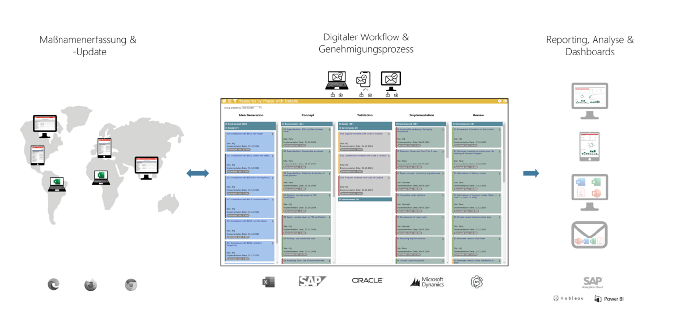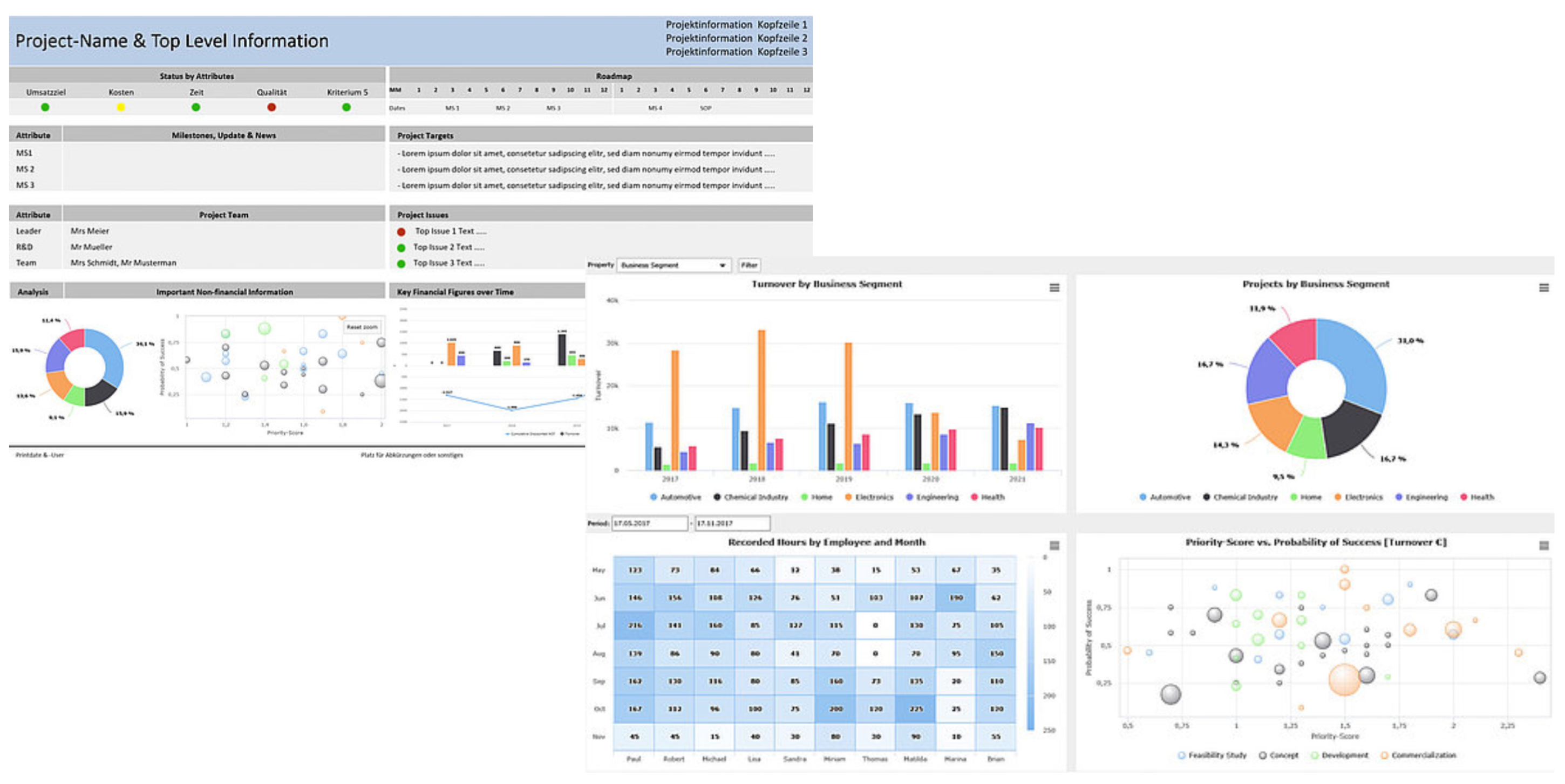 • Verfügbarkeit aller Analysetools auf allen Ebenen (Projektebene, Business Unit, Division, Gesamtportfolio)