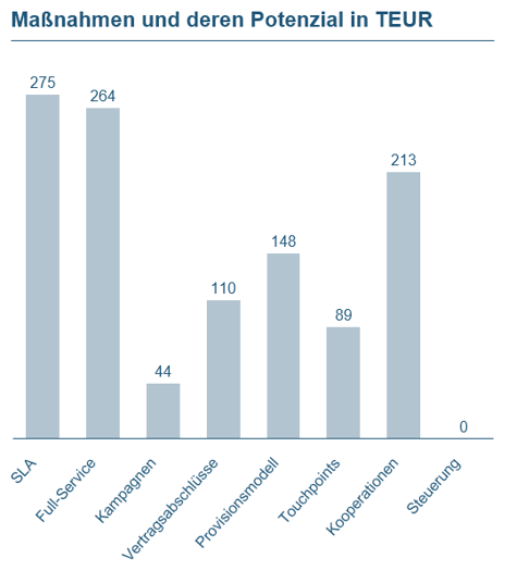 Zur Steigerung der Betreuungsquote wurden Maßnahmen mit einem kumulierten jährlichen Potenzial (inkrementales EBIT) von 1.143 TEUR identifiziert.
